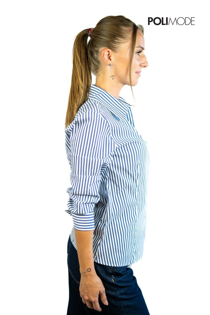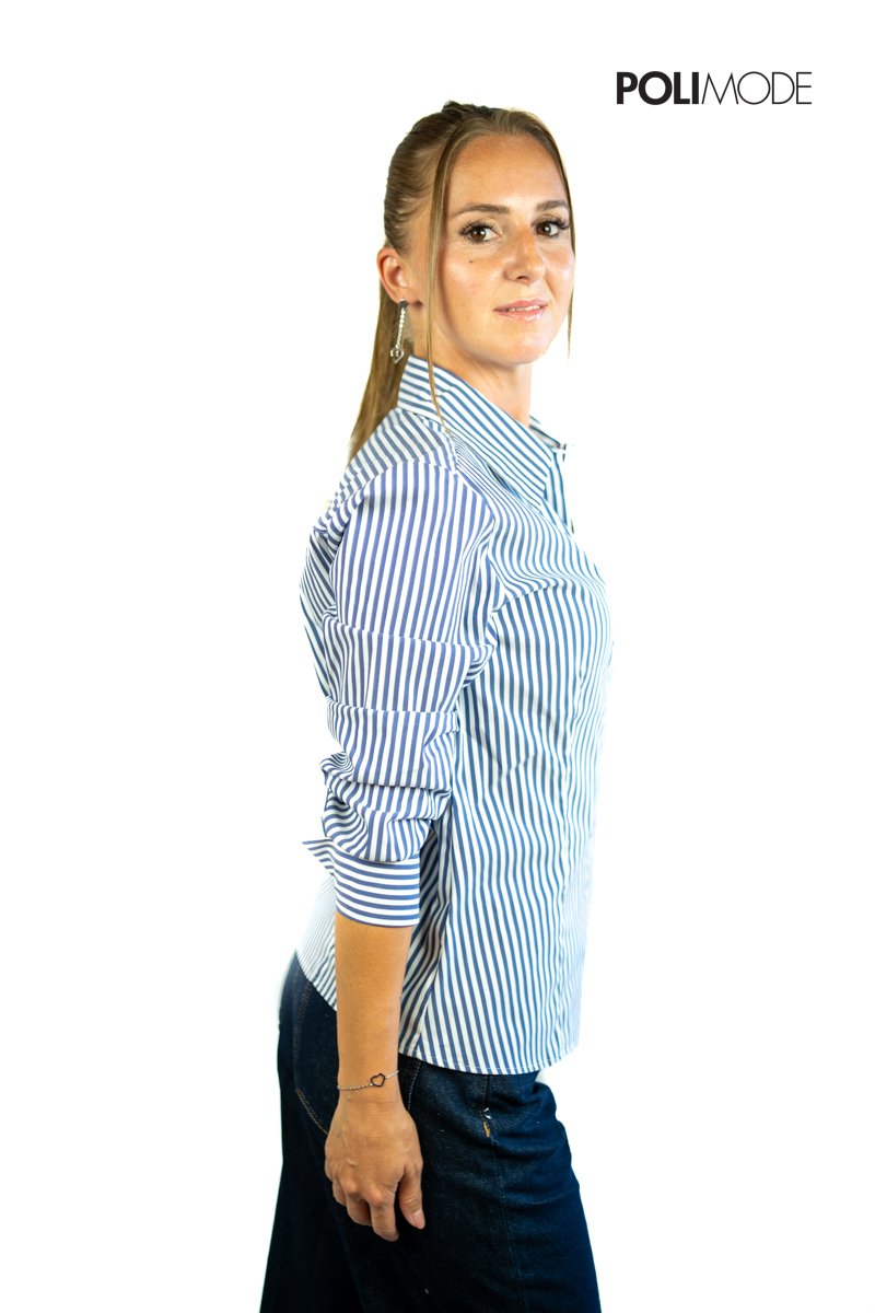 Camicia dal design pulito che unisce ispirazione maschile e proporzioni femminili, un capo essenziale e versatile per ogni guardaroba. Realizzata in popeline di cotone biologico e nylon stretch, offre una vestibilità slim e un comfort naturale. Le pinces sul busto valorizzano la silhouette, mentre l’abbottonatura nascosta conferisce un tocco elegante e minimalista.