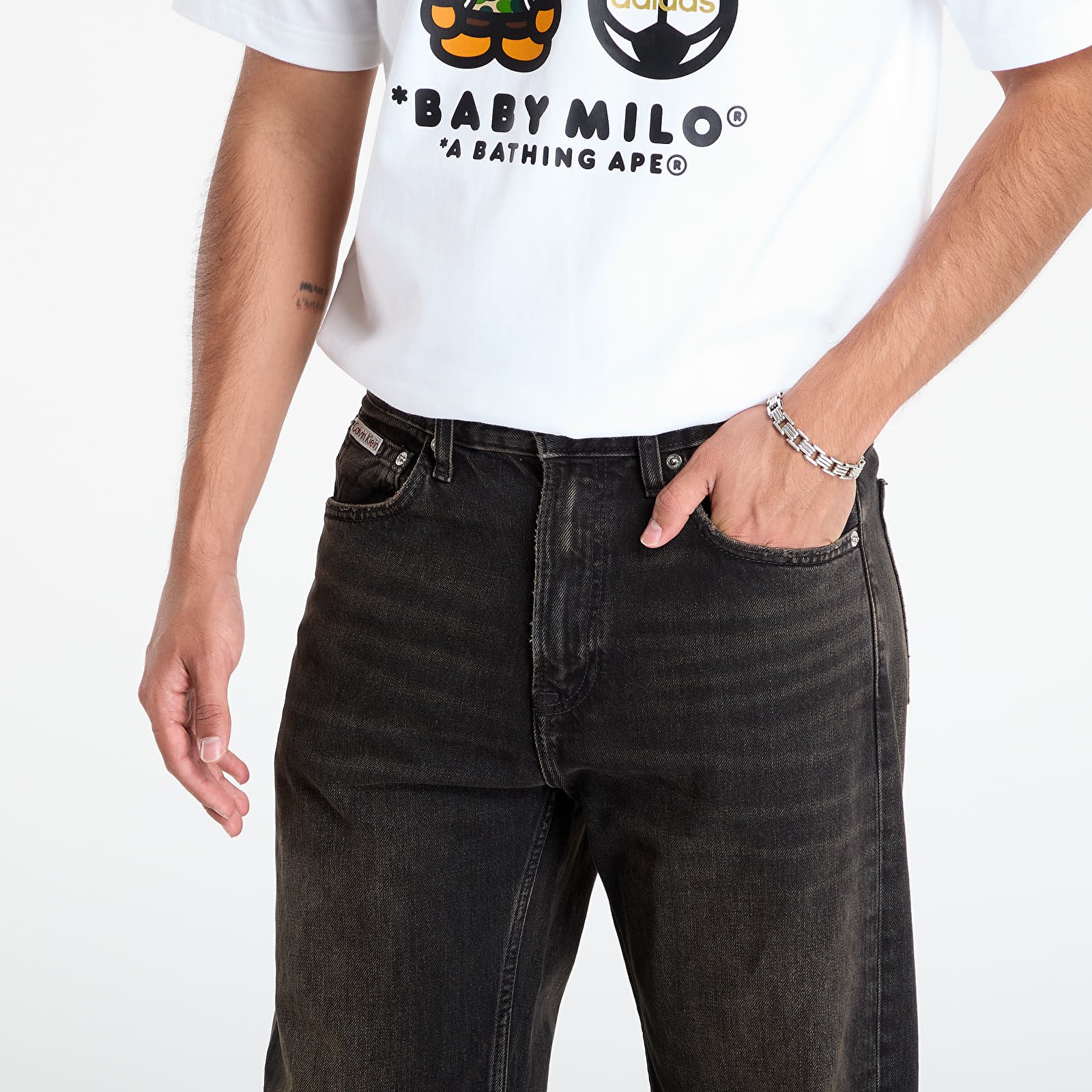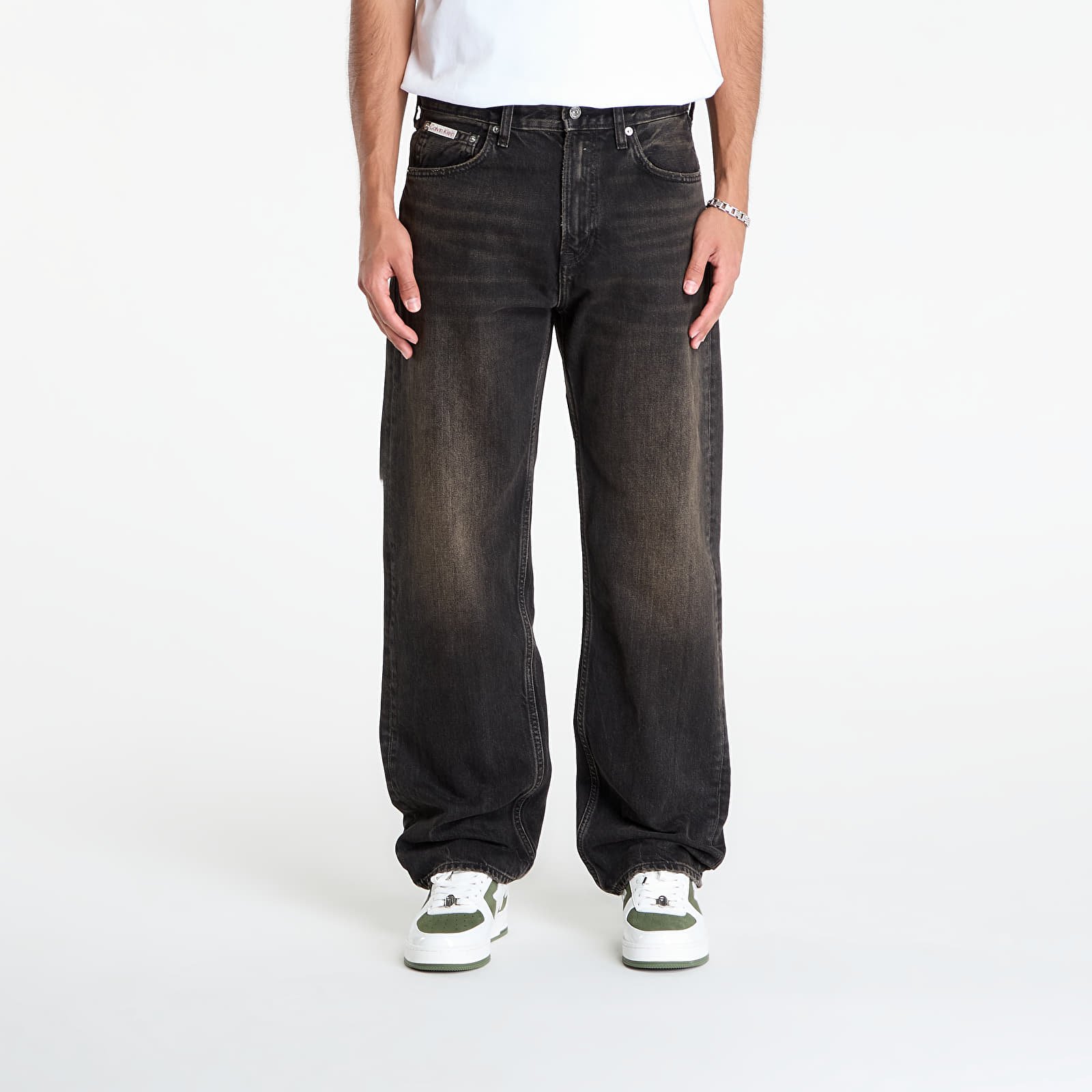 Dettagli funzionali come le tasche laterali, la tasca per le monete e le tasche posteriori rendono il modello pratico, mentre la chiusura con zip e bottone garantisce stabilità. Il design è completato dall’applique con logo Calvin Klein sul retro.